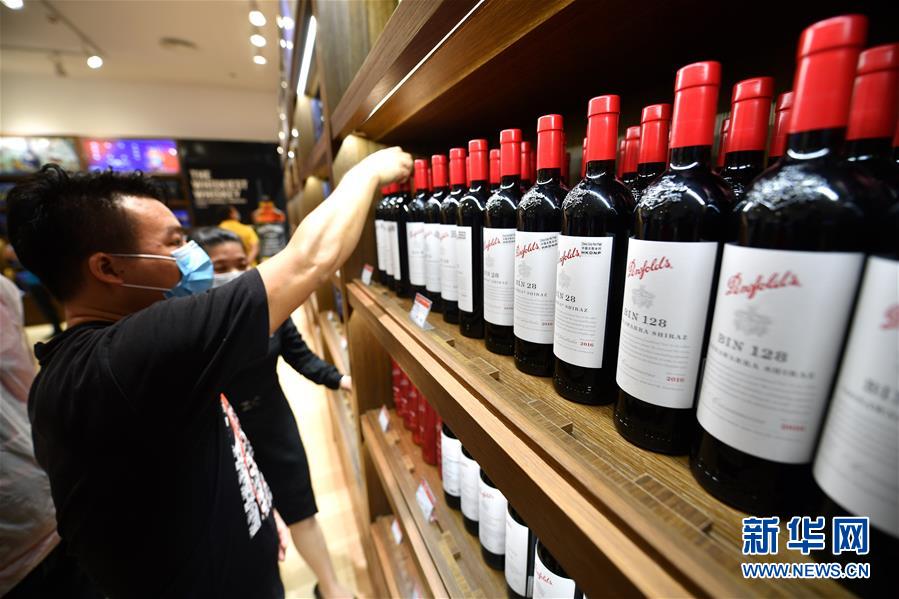 7月1日,顧客在海口日月廣場免稅店選購酒類商品。當日,海南開始實施調整后的離島免稅購物政策。海南離島旅客每年每人免稅購物額度提高至10萬元,電子消費產品等7類新增商品開售。新華社記者郭程攝