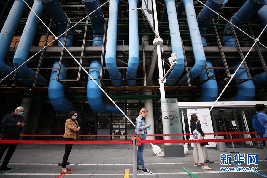7月1日,參觀者在法國巴黎蓬皮杜藝術中心外排隊等待。因新冠疫情關閉的法國巴黎蓬皮杜藝術中心于7月1日重新開門迎客。目前,中心只開放6層的臨時展區和4、5層的現代藝術常設展區。參觀者需提前網上預約參觀時段,11歲以上參觀者須佩戴口罩,參觀過程中保持安全距離。新華社記者高靜攝