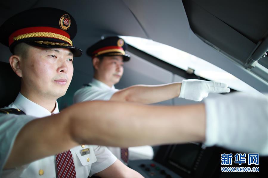 7月3日,擔任首發列車值乘工作的貴陽機務段司機在貴陽亮相。 新華社記者 劉續 攝