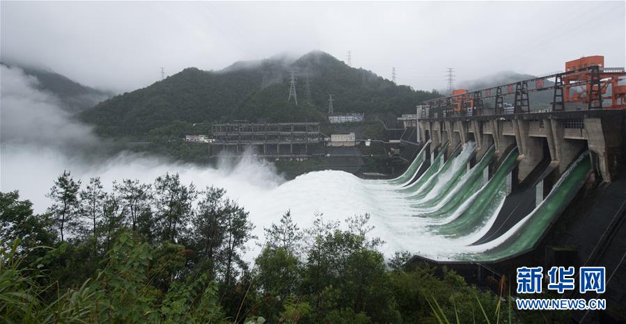 7月7日下午開啟7孔泄洪的新安江水庫。受持續降水影響,浙江新安江水庫水位持續快速上升。繼當日10時開啟3孔、12時開啟5孔泄洪后,新安江水庫于16時增加到7孔泄洪。新安江水庫是華東地區最大的水庫,在錢塘江流域的防洪度汛中起到關鍵作用。新華社記者翁忻旸攝
