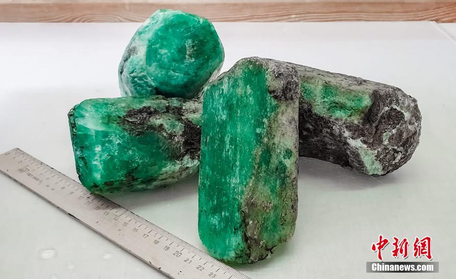 當地時間7月7日,俄羅斯斯維爾德洛夫斯克州,俄羅斯國家技術集團在馬林斯克礦區內發現總重量達4.8公斤的4塊綠寶石,是最近20年來發現的同類品質中最大的寶石。圖片來源:視覺中國