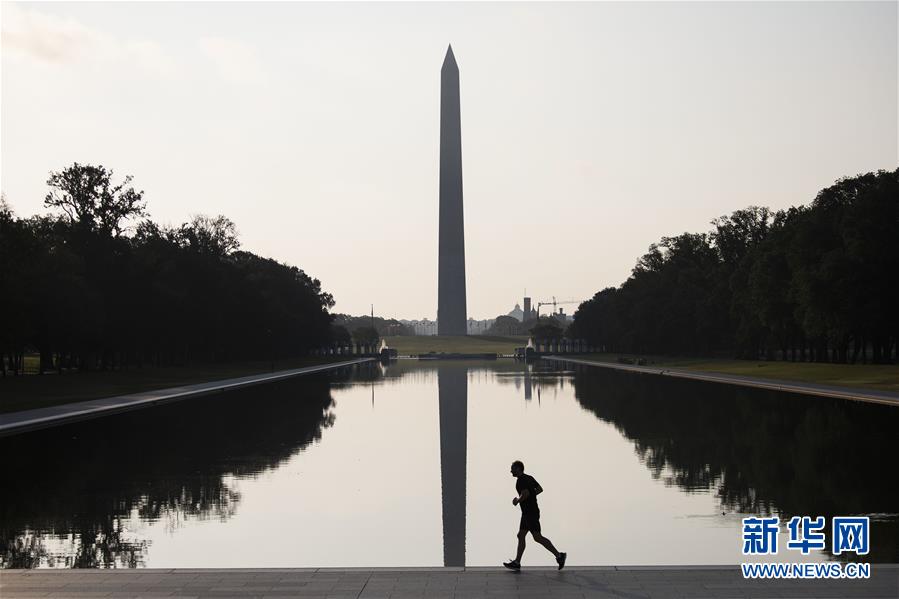 7月8日,在美國華盛頓,一名男子跑步經過林肯紀念堂倒影池。美國約翰斯·霍普金斯大學8日發布的新冠疫情最新統計數據顯示,美國累計確診病例超過300萬例。數據顯示,截至美國東部時間8日11時34分(北京時間23時34分),美國累計確診病例3016515例,累計死亡病例131594例。新華社記者劉杰攝