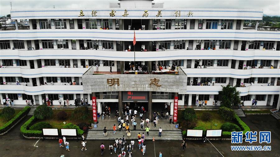 7月9日,考生進(jìn)入歙縣第二中學(xué)考點(diǎn)(無人機(jī)照片)。受強(qiáng)降雨影響,2020年高考安徽歙縣考區(qū)7月7日未能如期開考,經(jīng)研究并報(bào)教育部批準(zhǔn),歙縣考區(qū)于9日啟用2020年普通高等學(xué)校招生全國統(tǒng)一考試語文、數(shù)學(xué)(文、理)科目副題進(jìn)行考試。新華社記者黃博涵攝