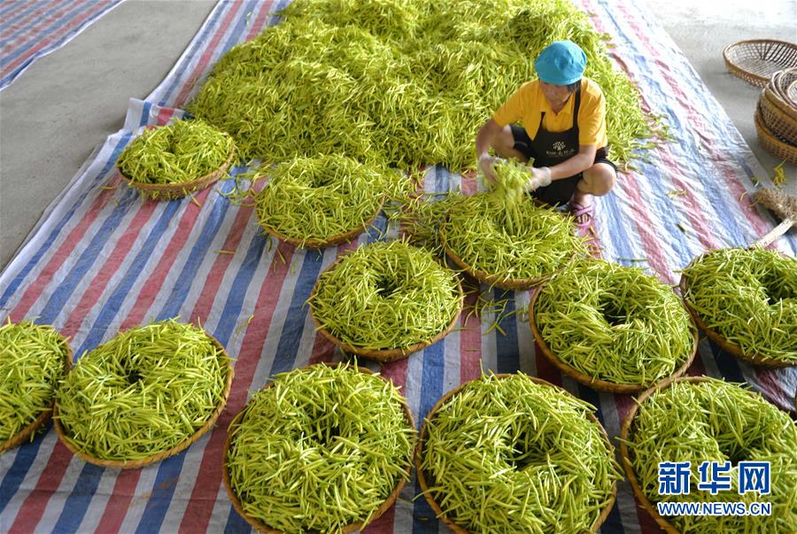 7月12日,祁東縣黃土鋪鎮雷公殿村,村民在分揀黃花菜,準備通過傳統的加工工藝進行蒸煮殺青。新華社記者 趙眾志 攝