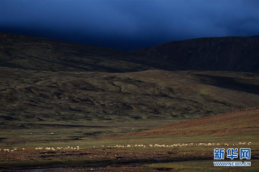 7月7日在可可西里卓乃湖區域拍攝的一群藏羚羊。目前正值藏羚羊產仔季。來自青海三江源、新疆阿爾金山、西藏羌塘等地的藏羚羊來到位于青海省可可西里腹地、被譽為“藏羚羊大產房”的卓乃湖區域產仔。新華社記者 張龍 攝