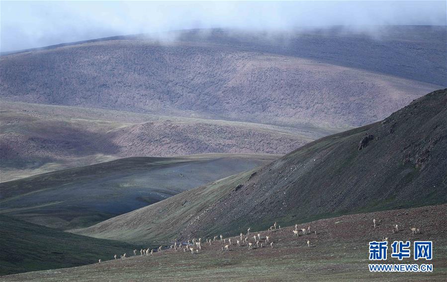 7月7日在可可西里卓乃湖區域拍攝的一群藏羚羊。目前正值藏羚羊產仔季。來自青海三江源、新疆阿爾金山、西藏羌塘等地的藏羚羊來到位于青海省可可西里腹地、被譽為“藏羚羊大產房”的卓乃湖區域產仔。新華社記者 薛玉斌 攝