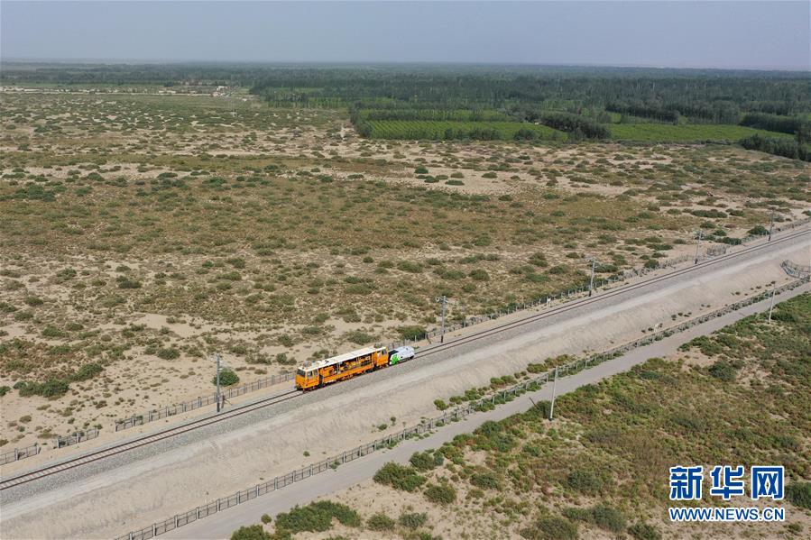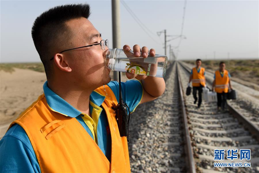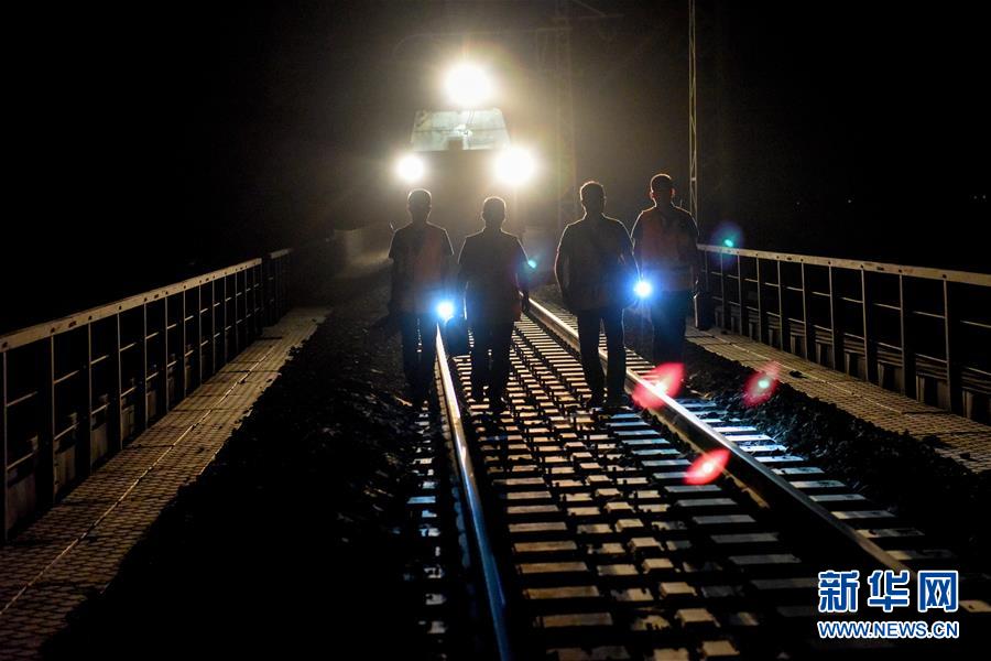 鋼軌打磨機組的技術員進行鋼軌巡檢(7月14日攝)。新華社記者 丁磊 攝
