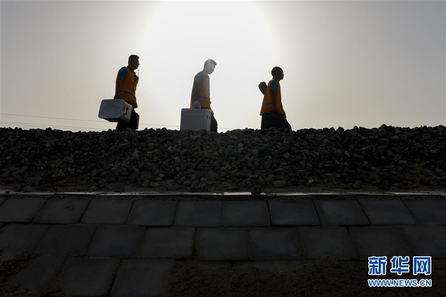 鋼軌打磨機組的技術員拿著檢測設備前往下一個檢測點(7月14日攝)。新華社記者 丁磊 攝