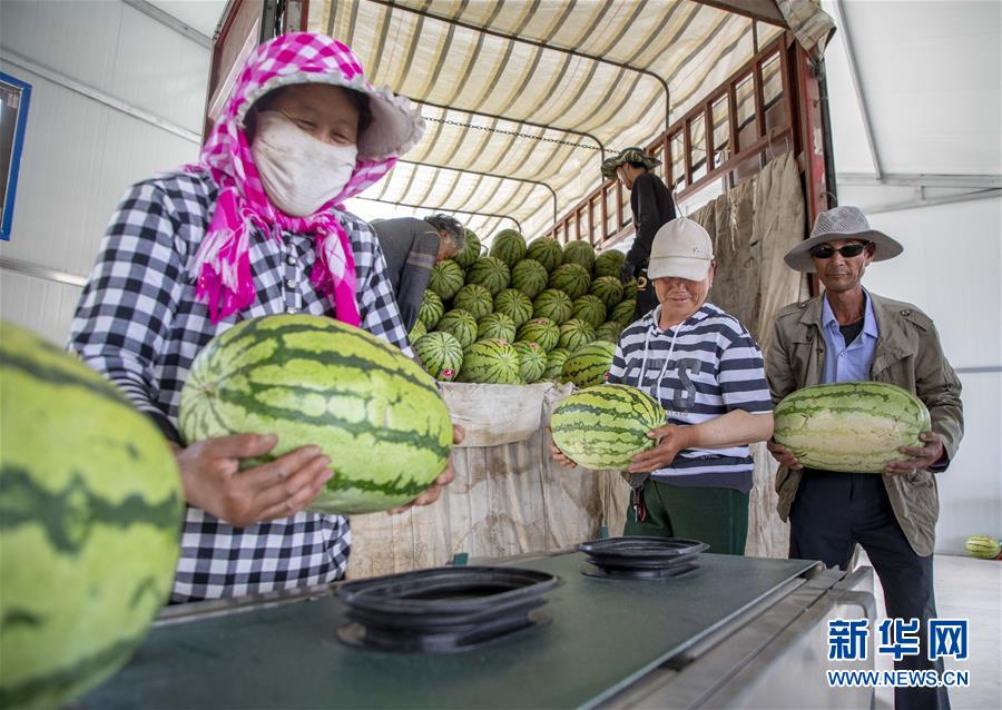 7月16日,在寧夏中衛市香山鄉硒砂瓜萬畝示范基地,瓜農在采收硒砂瓜。近日,寧夏中衛市迎來硒砂瓜豐收季。硒砂瓜是中衛市的特色農產品,近年來,當地采取技術創新、規模化種植、休耕輪作等多項舉措,讓硒砂瓜種植成為當地農民增收致富的重要產業。據了解,今年中衛市硒砂瓜種植面積為69.7萬畝。新華社記者楊植森攝