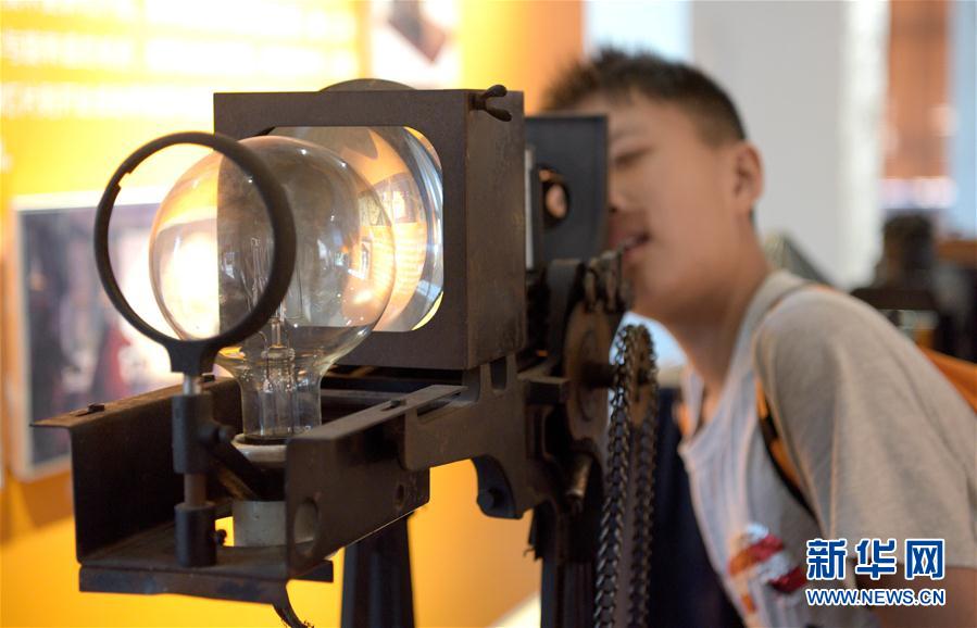 2019年8月29日,參觀者在西影電影藝術體驗中心參觀展出的老式幻燈機。當日,陜西省西安市西影電影藝術體驗中心正式對外開放。新華社記者劉瀟攝