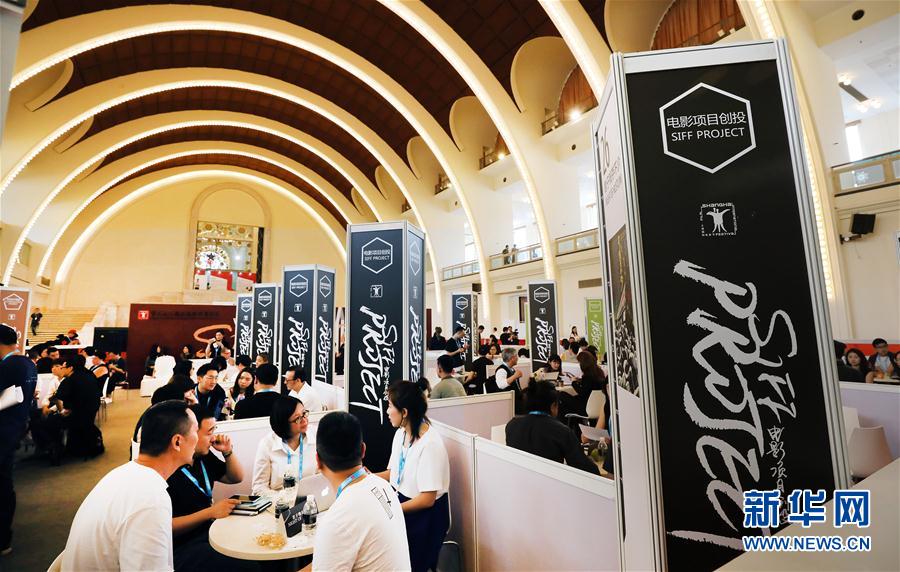 2019年6月17日,設在電影市場里的電影項目創投區吸引眾多業內人士前來洽談。