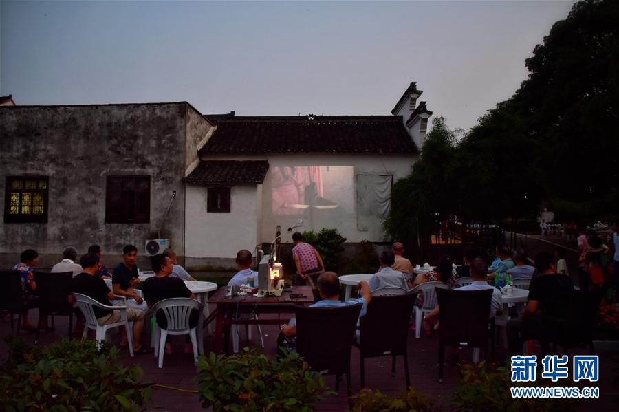 2020年6月30日,浙江嘉興桐鄉市洲泉鎮馬鳴村村民自發圍坐在廣場觀看電影。在浙江嘉興桐鄉市洲泉鎮馬鳴村,王志華、朱文炳、朱生榮、朱強四代電影放映員,“接力”放映電影五十余年。新華社記者鄭夢雨攝