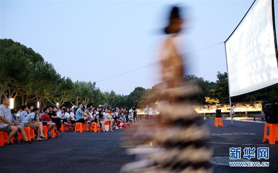 2019年7月7日,人們在上海閔行體育公園內的露天電影院里看電影。新華社記者方喆攝