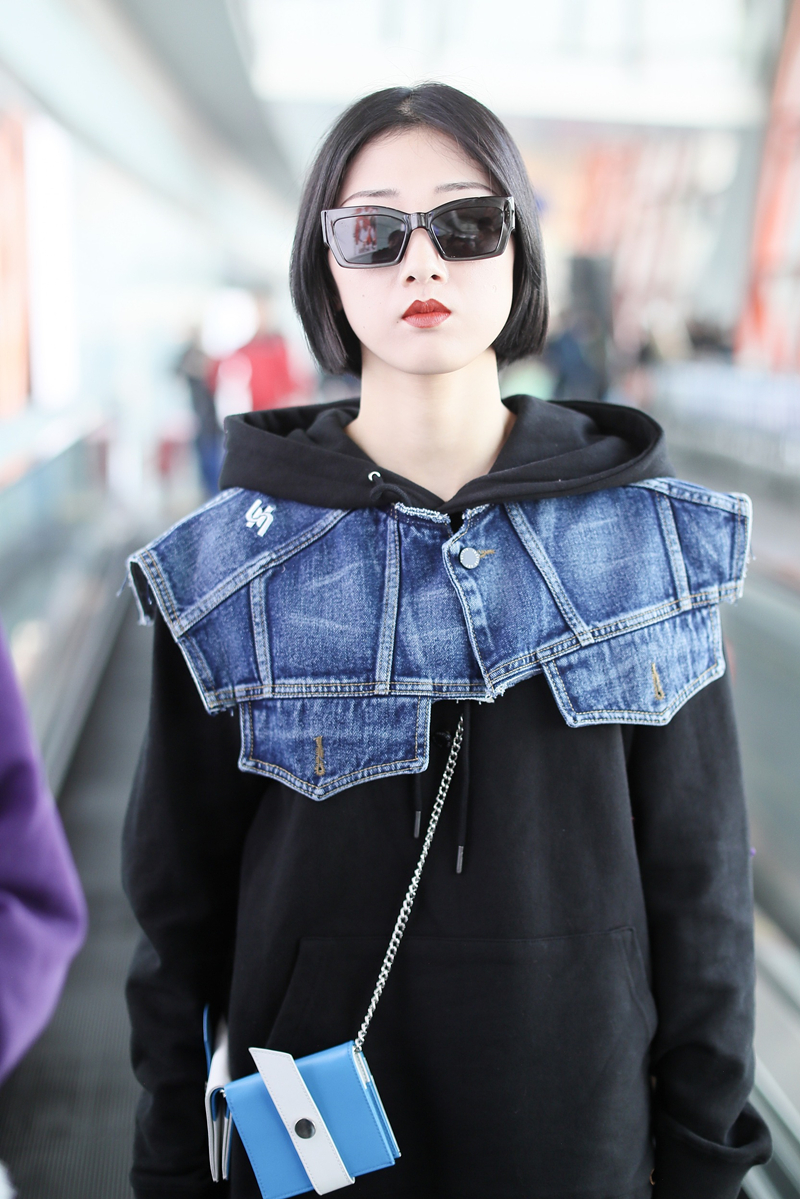 2019年10月27日,北京,Yamy(郭穎)亮相機場。
