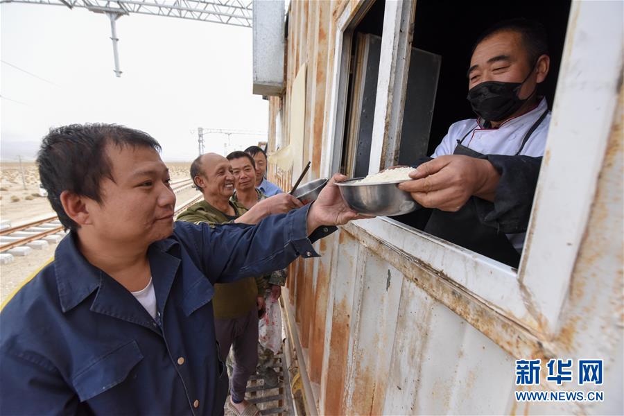 在索爾庫里宿營地,中鐵一局的施工人員在“白皮列車”內吃午飯(7月19日攝)。新華社記者 丁磊 攝