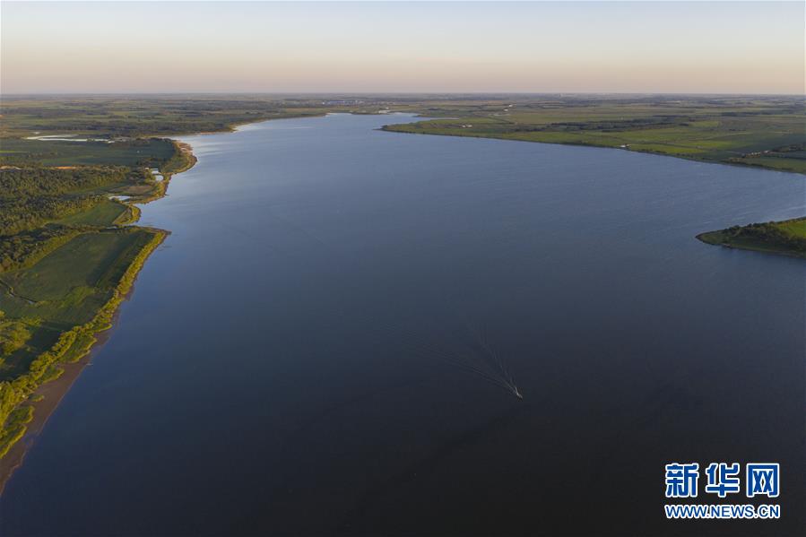 7月24日拍攝的大力加湖和停在湖面上的漁船。大力加湖位于“中國東極”黑龍江省撫遠市,面積28.5平方公里,兩岸地勢低平,多濕地、草原,湖內水產豐富。夏日傍晚時分,漁民捕魚歸來,美麗畫卷映入眼簾。新華社記者謝劍飛攝