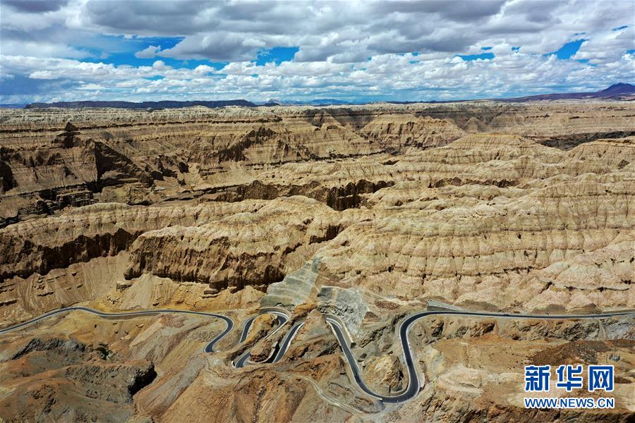 這是7月26日在西藏阿里地區札達縣托林鎮拍攝的札達土林(無人機照片)。札達土林位于西藏阿里地區札達縣境內,千姿百態的土林與藍天、白云相互映襯,景色壯美。新華社記者 詹彥 攝