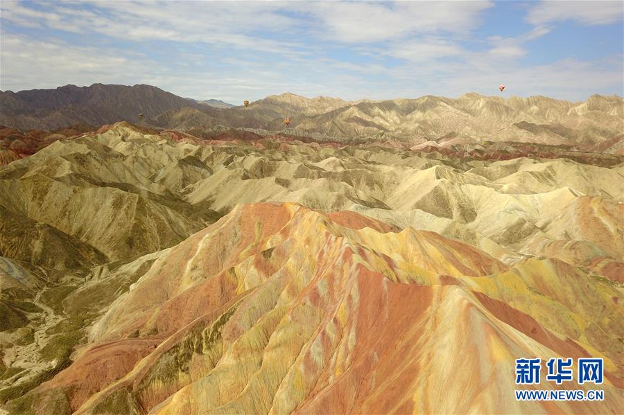 這是7月27日拍攝的張掖世界地質公園七彩丹霞景區景觀(無人機照片)。新華社記者 范培珅 攝