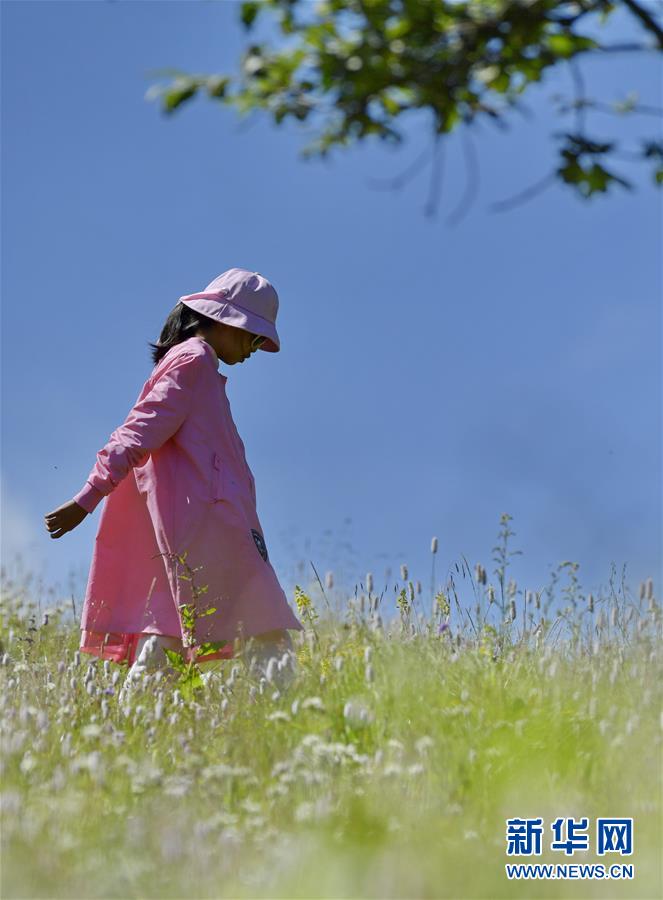 一名游客在魯朗旅游小鎮的高山牧場游玩(7月26日攝)。新華社記者 張汝鋒 攝