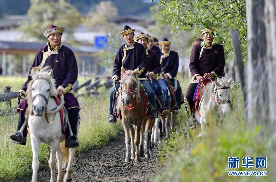 農牧民在魯朗旅游小鎮騎行(7月26日攝)。新華社記者 張汝鋒 攝