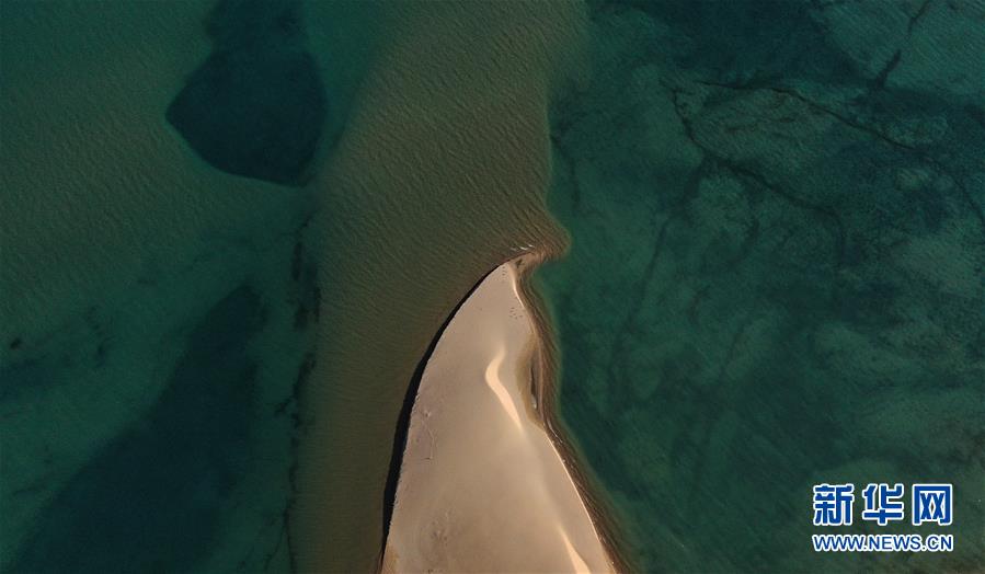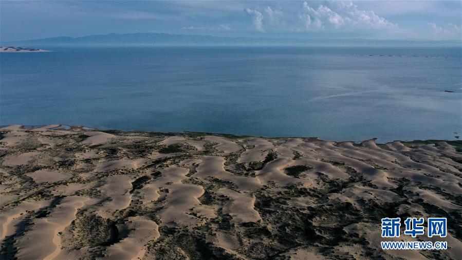 這是青海湖沙島一角(7月28日攝,無人機(jī)照片)。盛夏傍晚,位于青海湖東北部的沙島,島內(nèi)湖泊星羅棋布,沙丘連綿起伏,風(fēng)景別致。金沙與湖水掩映,在陽光的勾勒下形成一幅美麗的畫卷。新華社記者張宏祥攝