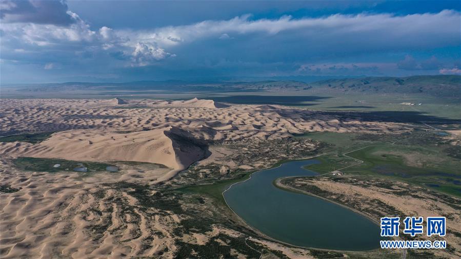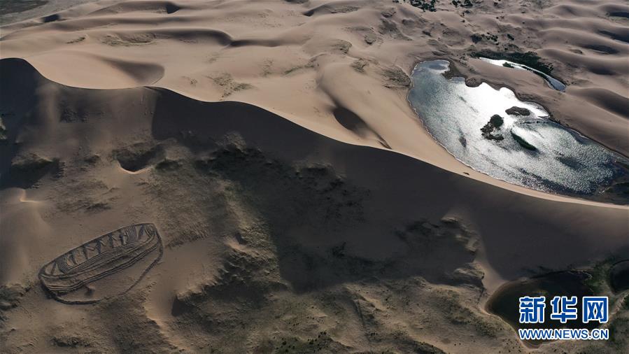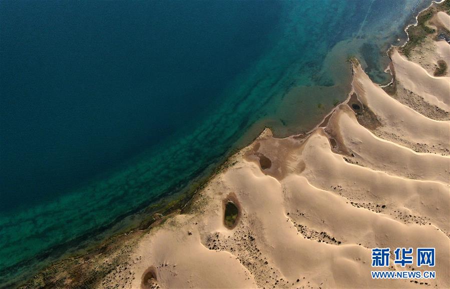 這是青海湖沙島風(fēng)光(7月28日攝,無人機(jī)照片)。盛夏傍晚,位于青海湖東北部的沙島,島內(nèi)湖泊星羅棋布,沙丘連綿起伏,風(fēng)景別致。金沙與湖水掩映,在陽光的勾勒下形成一幅美麗的畫卷。新華社記者張宏祥攝