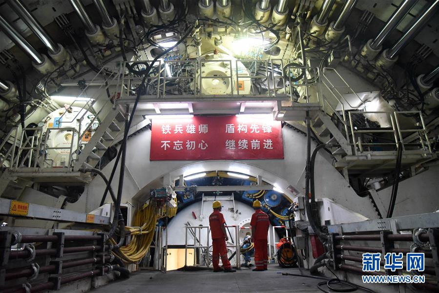 7月29日,“萬里黃河第一隧”——濟南黃河隧道工程施工人員在查看盾構機工作情況。新華社記者王凱攝