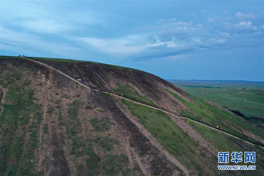 7月29日,游客在烏蘭哈達火山地質公園游玩。新華社記者劉磊攝