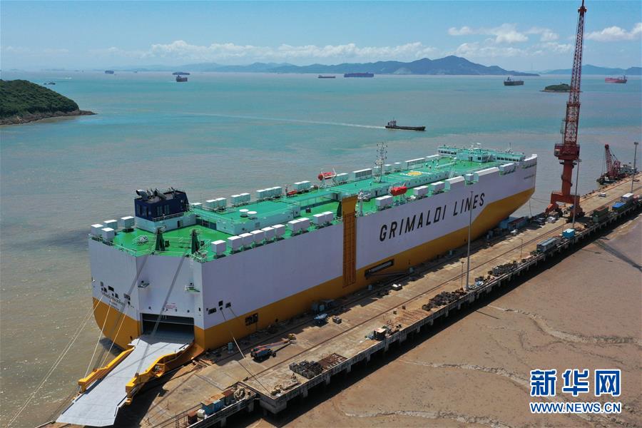8月1日在位于螞蟻島的揚(yáng)帆集團(tuán)東海岸造船廠拍攝的一艘在建的汽車滾裝船,月底即將交付給意大利客戶。新華社記者黃宗治攝