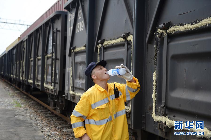 8月6日,合肥運用車間列車檢修員在工作間隙喝水。合肥市近日持續(xù)高溫天氣。在中國鐵路上海局集團(tuán)有限公司杭州北車輛段合肥運用車間,386名列車檢修工人頭頂烈日堅守崗位,確保暑運列車的安全運行。據(jù)了解,暑運期間,合肥運用車間日均檢修列車105列,檢修車廂5058節(jié)。新華社記者黃博涵攝
