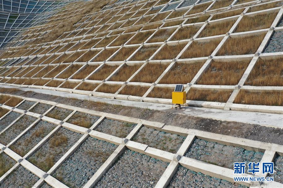 這是7月15日在舟曲縣南峪鄉江頂崖山體滑坡治理點拍攝的一處技術監測設備(無人機照片)。新華社記者杜哲宇攝