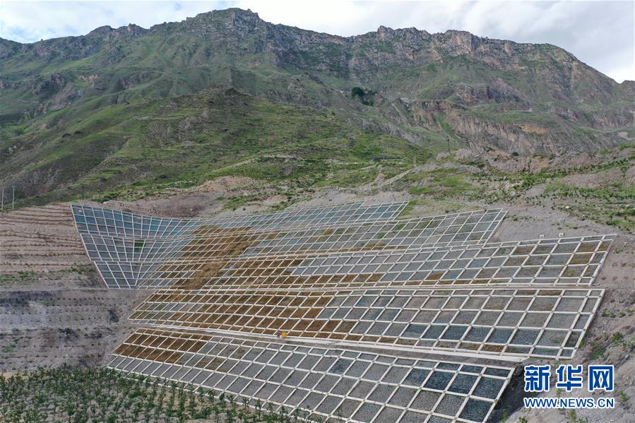 這是7月15日拍攝的舟曲縣南峪鄉江頂崖山體滑坡治理點(無人機照片)。新華社記者杜哲宇攝