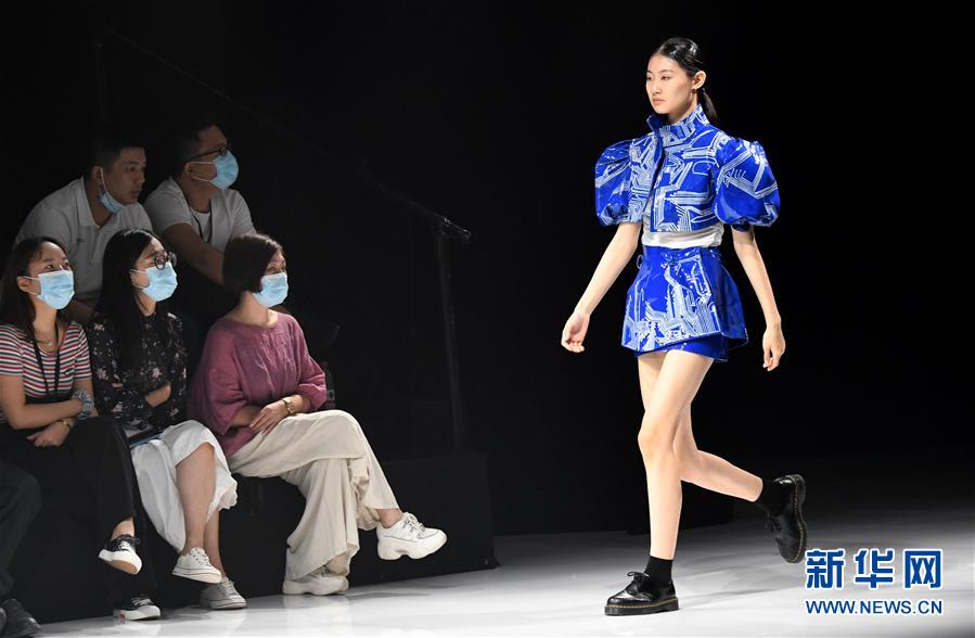 8月6日,模特在時裝秀上展示時裝。當日,2020中國(河南)國際大學生時裝周舉行河南大學生優秀服裝設計專場展示。8月5日至7日,2020中國(河南)國際大學生時裝周在河南省新密市豫發密蘭小鎮舉行。新華社記者朱祥攝