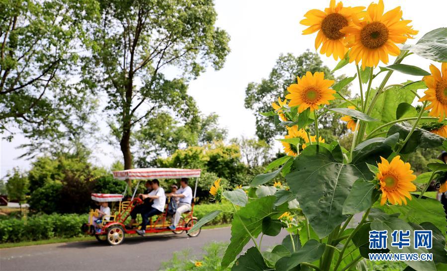游客在上海市金山區的花開海上生態園游玩(6月26日攝)。新華社記者方喆攝