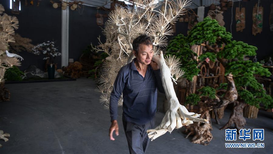 8月7日,一名工人在永??h永安鄉(xiāng)根雕工藝品就業(yè)扶貧車間搬運根雕半成品。2017年以來,廣西桂林市永??h永安鄉(xiāng)通過幫扶返鄉(xiāng)青年創(chuàng)業(yè)的方式,建立起根雕工藝品就業(yè)扶貧車間,組織貧困群眾進車間務工學藝,把當地豐富的朽木和柑橘樹根枝資源利用起來,加工成盆景、茶桌、吊燈等根雕工藝品,不僅幫助貧困群眾在家門口掌握一技之長,還讓他們在脫貧摘帽后實現穩(wěn)定增收。新華社記者張愛林攝