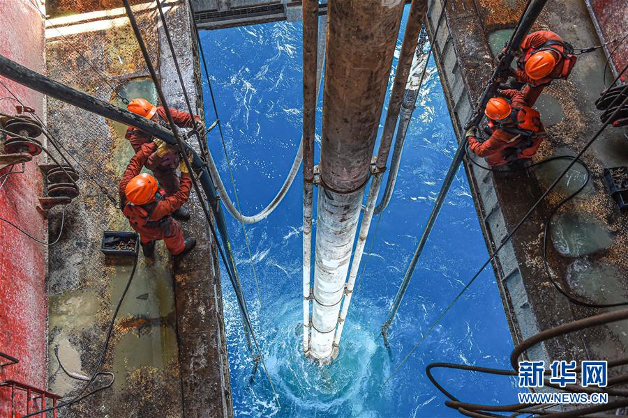 鉆井隊(duì)分兩班24小時(shí)不間斷運(yùn)轉(zhuǎn)。在一個(gè)班次中,9名鉆井工人協(xié)同操控鉆井設(shè)備,鉆探著海洋油氣資源。契入海底的“探針”常可達(dá)五、六千米。