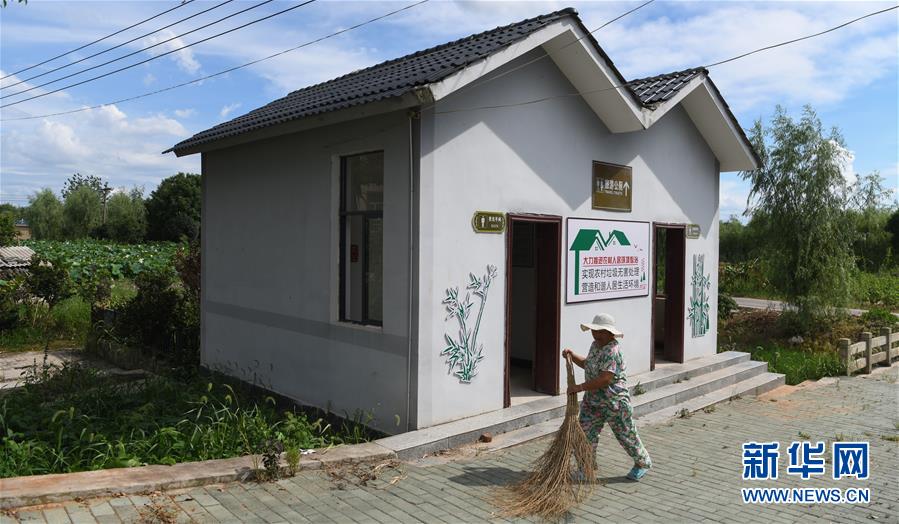 鄂州市長港鎮峒山村村民在打掃衛生(8月6日攝)。新華社記者 程敏 攝