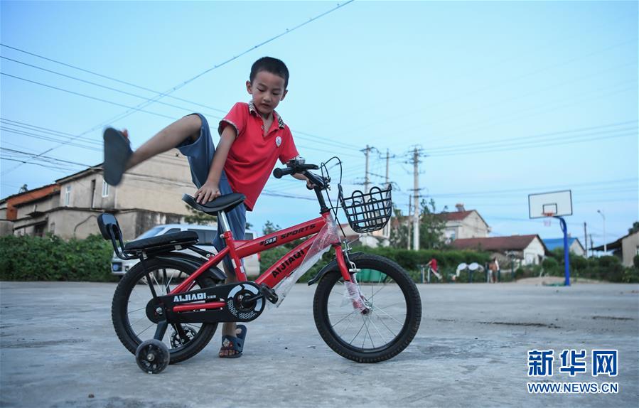 小朋友在鄂州市長港鎮峒山村操場上玩耍(8月6日攝)。新華社記者 程敏 攝