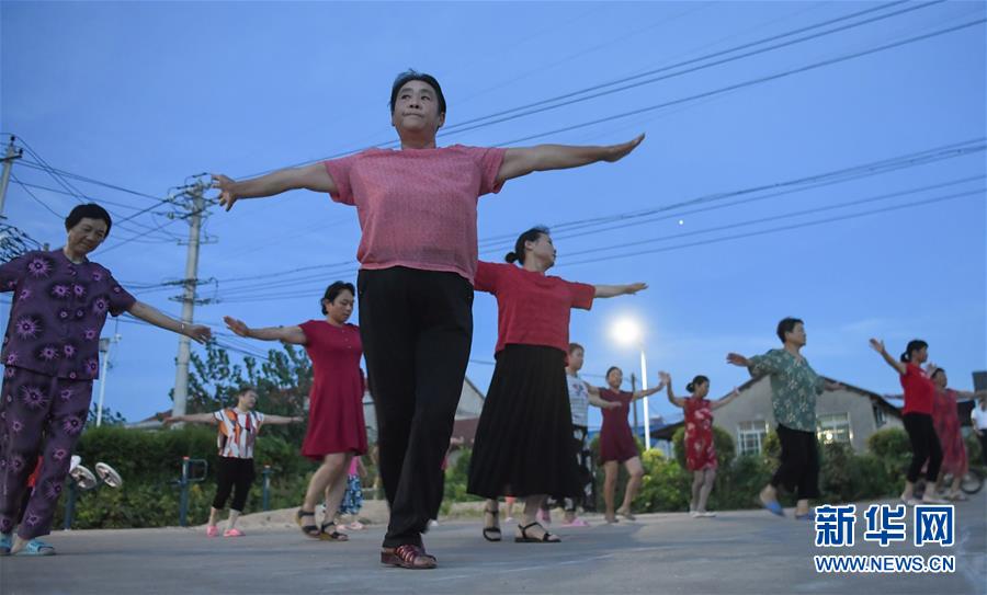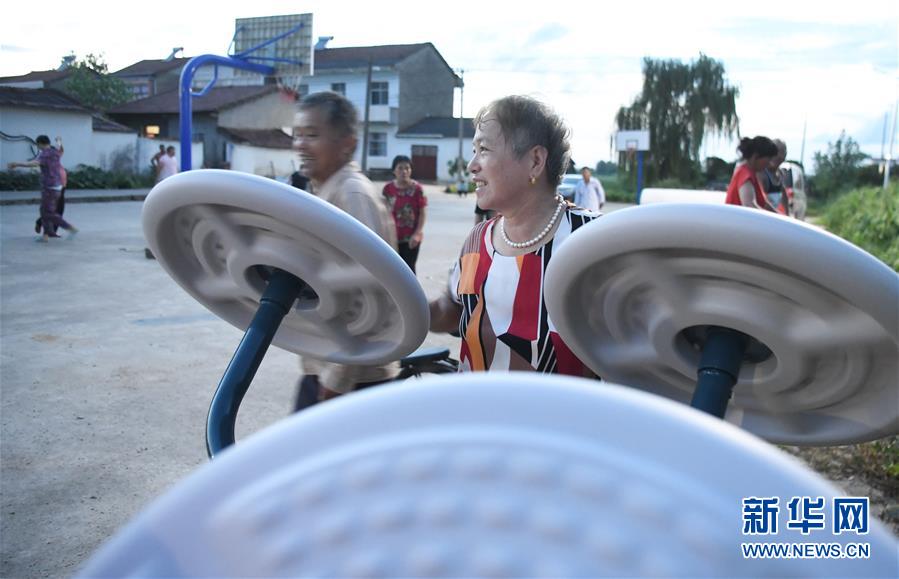 鄂州市長港鎮峒山村村民在鍛煉身體(8月6日攝)。新華社記者 程敏 攝