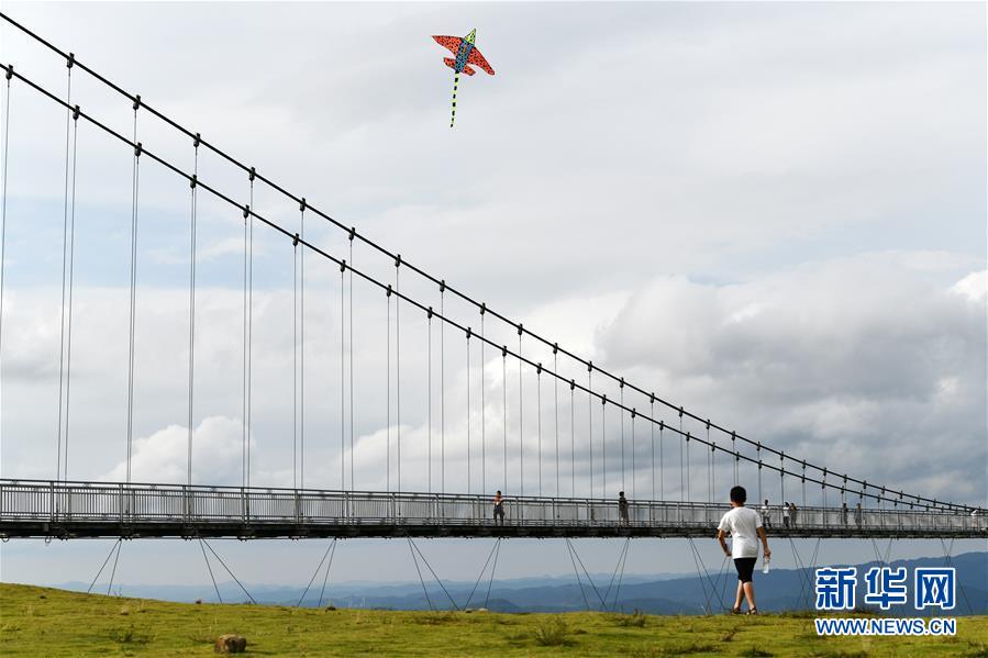 8月8日,游客在貴州省龍里油畫大草原旅游觀光。近日,貴州省黔南布依族苗族自治州龍里縣境內氣候宜人,龍里油畫大草原、“龍門鎮”武俠文化主題景區等景點吸引眾多游客前來觀光旅游。新華社記者楊文斌攝。