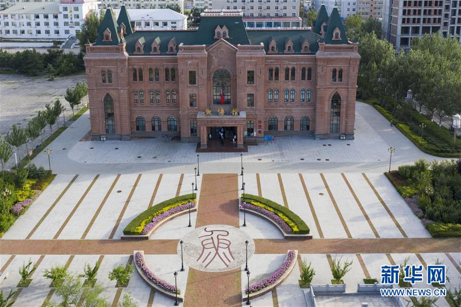 這是8月8日在撫遠市拍攝的魚文化博物館(無人機照片)。魚文化博物館主要展示了黑龍江和烏蘇里江流域的水生物和生態。新華社記者謝劍飛攝。