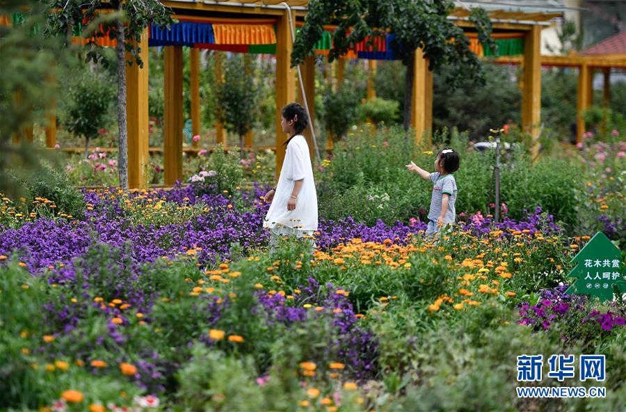 8月11日,小朋友在尖扎縣昂拉鄉德吉村花海景區內游玩。新華社記者張龍攝