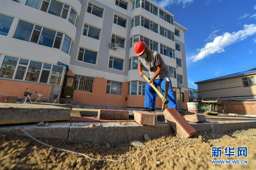 8月11日,工人在鎮(zhèn)賚縣慶生社區(qū)一老舊小區(qū)內(nèi)鋪設(shè)路面方磚。2019年底開始,吉林省白城市鎮(zhèn)賚縣對超過20年房齡的老舊小區(qū)進(jìn)行全面改造升級,優(yōu)先完成樓體內(nèi)外墻面、樓頂防水、道路硬化工程,并協(xié)調(diào)各職能部門對地下管網(wǎng)、綠化美化等基礎(chǔ)設(shè)施問題進(jìn)行統(tǒng)籌施工,減少后期二次施工造成的環(huán)境破壞和資源浪費(fèi)。一期工程預(yù)計(jì)于今年10月完工,施工完成后,政府相關(guān)部門將為這些小區(qū)統(tǒng)一配備物業(yè)公司,解決后期設(shè)施維護(hù)問題。新華社記者張楠攝