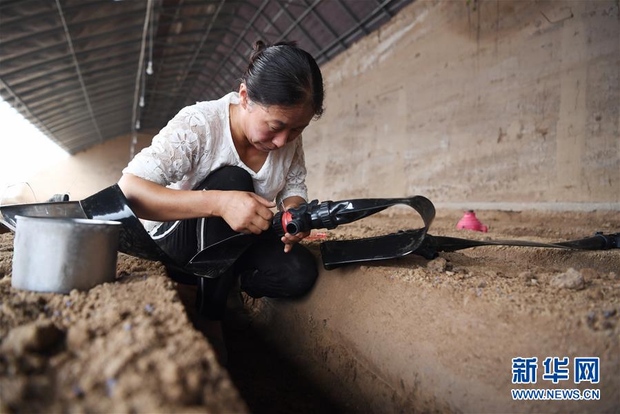 8月11日,在甘肅省臨夏回族自治州臨夏縣先鋒鄉前韓村,搬遷戶朱懷蘭在日光溫室內勞作。近年來,甘肅省臨夏回族自治州臨夏縣把易地扶貧搬遷作為打贏脫貧攻堅戰的重要任務,科學推進易地扶貧搬遷和脫貧攻堅工作。為了讓搬遷群眾能夠安居樂業,當地政府注重扶持后續產業發展,引導搬遷群眾發展日光溫室、布鞋加工、觀光農業、特色種養殖等產業,幫助搬遷群眾實現就近就業、拓寬增收渠道,確保搬遷群眾“搬得出、穩得住、有事做、能致富”。新華社記者陳斌攝