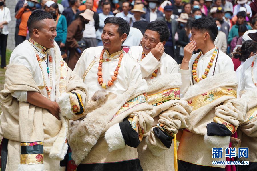 8月12日,身著節日盛裝的演員和當地群眾在夏澤灘草原上跳起鍋莊舞。新華社記者 黃澤民 攝