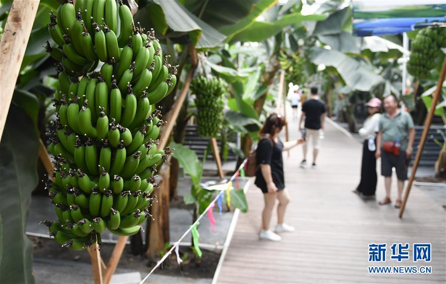 在吉林省永吉縣萬昌鎮宇豐紅果木瓜產業園,游客在大棚內合影留念(8月12日攝)。新華社記者 許暢 攝