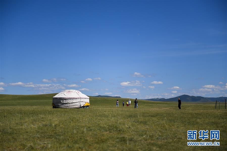 游客在克什克騰旗貢格爾草原上游玩(8月11日攝)。克什克騰旗位于內蒙古自治區赤峰市西北部,境內的湖泊、河流、草原、森林等自然景觀,讓人們流連忘返。新華社記者劉磊攝
