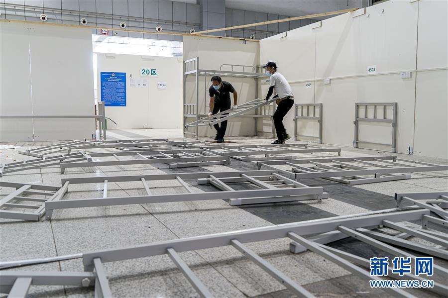 8月13日,工作人員在江漢方艙內進行拆除作業。 當日,為應對新冠肺炎疫情設立的武漢江漢方艙醫院正式開始關艙拆除作業。 據介紹,江漢方艙醫院是由武漢國際會展中心改建而成,2月5日開始收治第一批患者。截至3月9日休艙,江漢方艙醫院共收治患者1848人,累計治愈出院1327人、轉出521人。 新華社記者 熊琦 攝