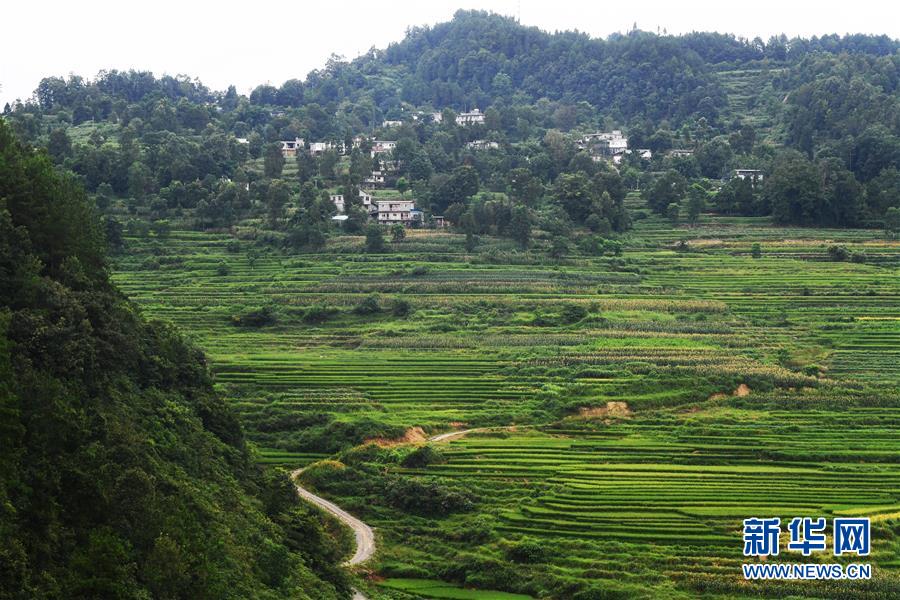 這是8月13日拍攝的鞍子鎮(zhèn)大林村梯田景色。時下,重慶市彭水苗族土家族自治縣鞍子鎮(zhèn)大林村的梯田景色迷人,構成一幅幅山鄉(xiāng)田園美景。新華社記者王全超攝