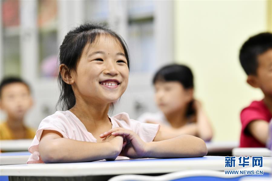 8月13日,貴州省思南縣雙塘街道麗景社區易地扶貧搬遷安置點的孩子在上音樂課。新華社記者楊文斌攝